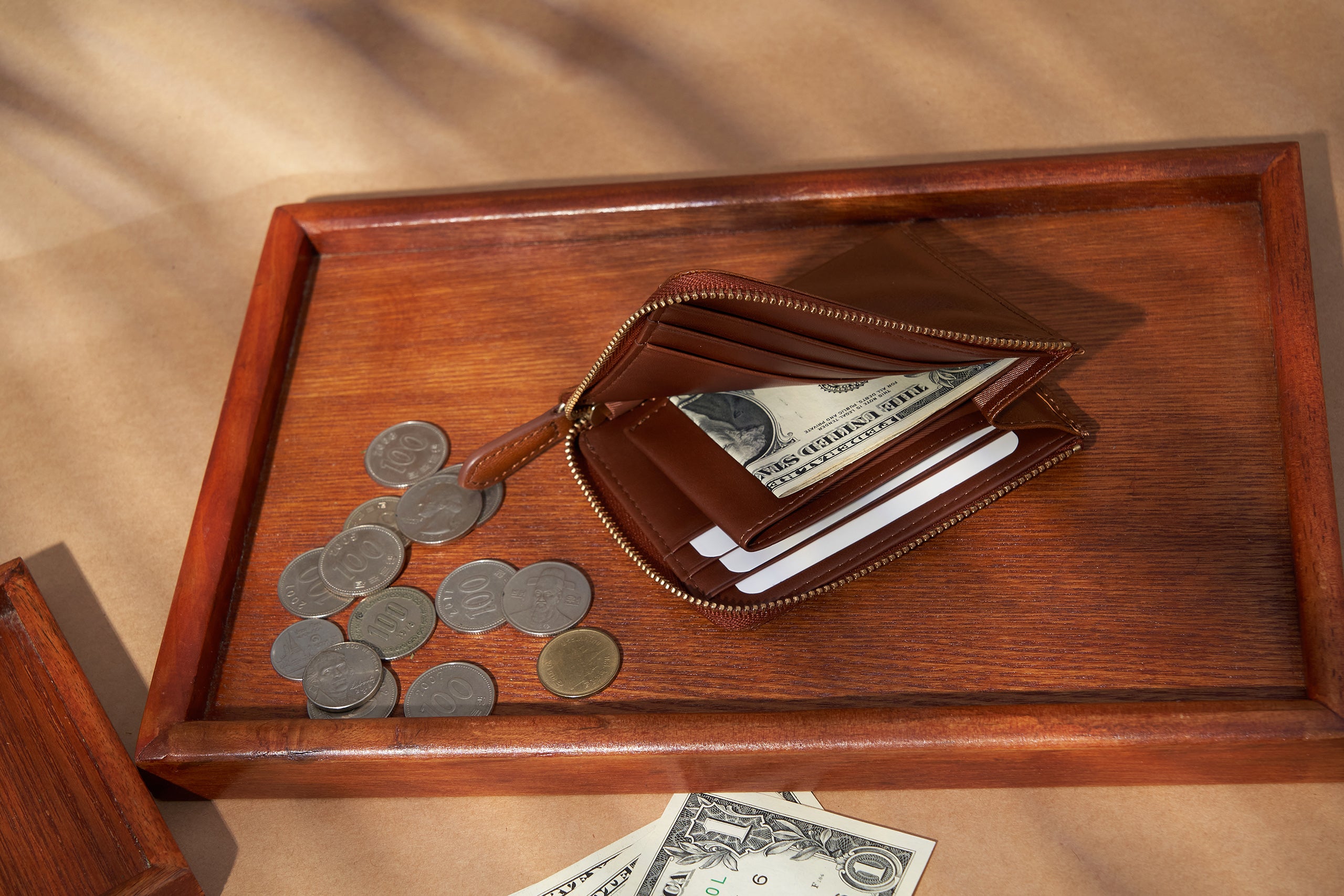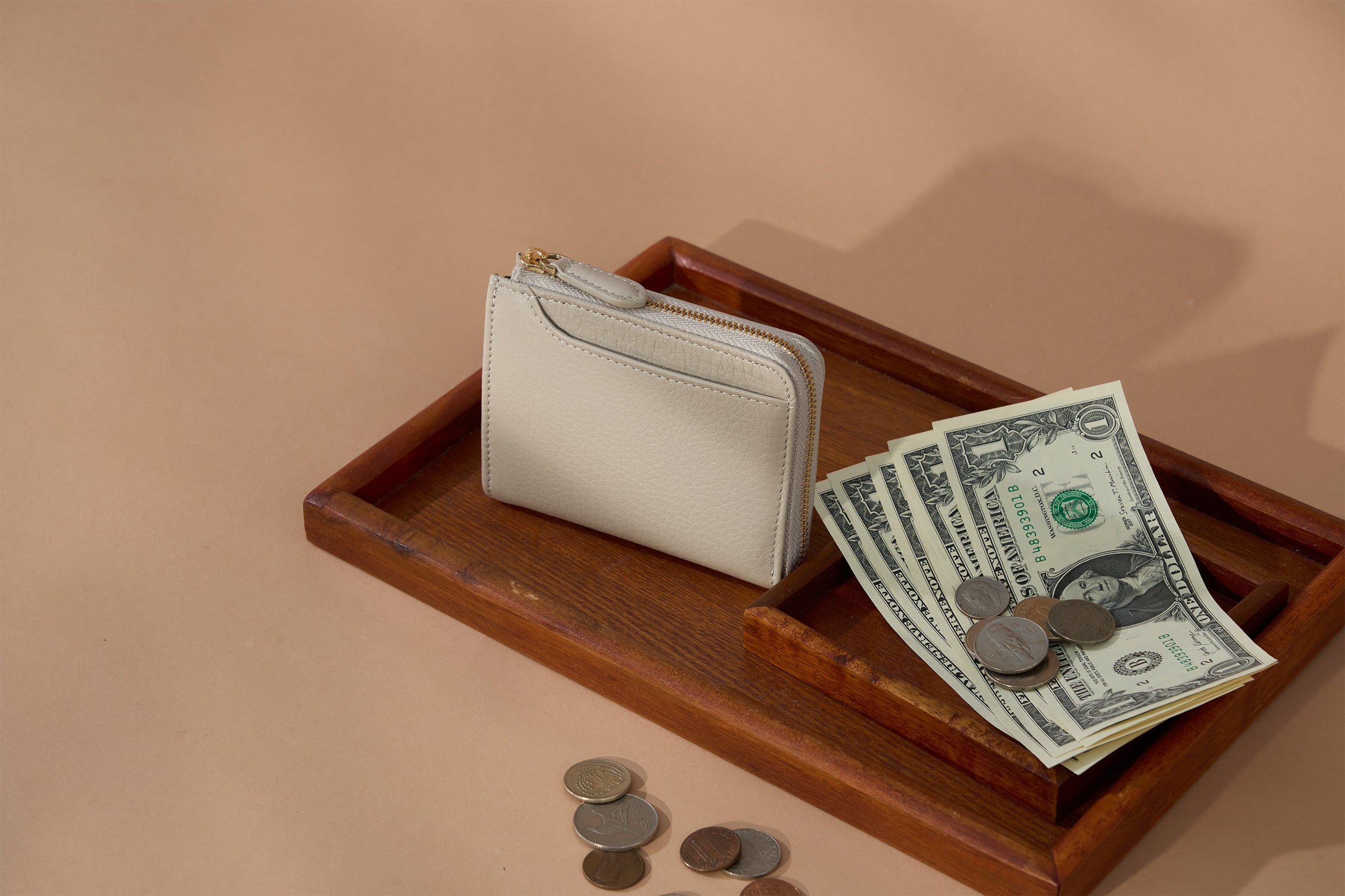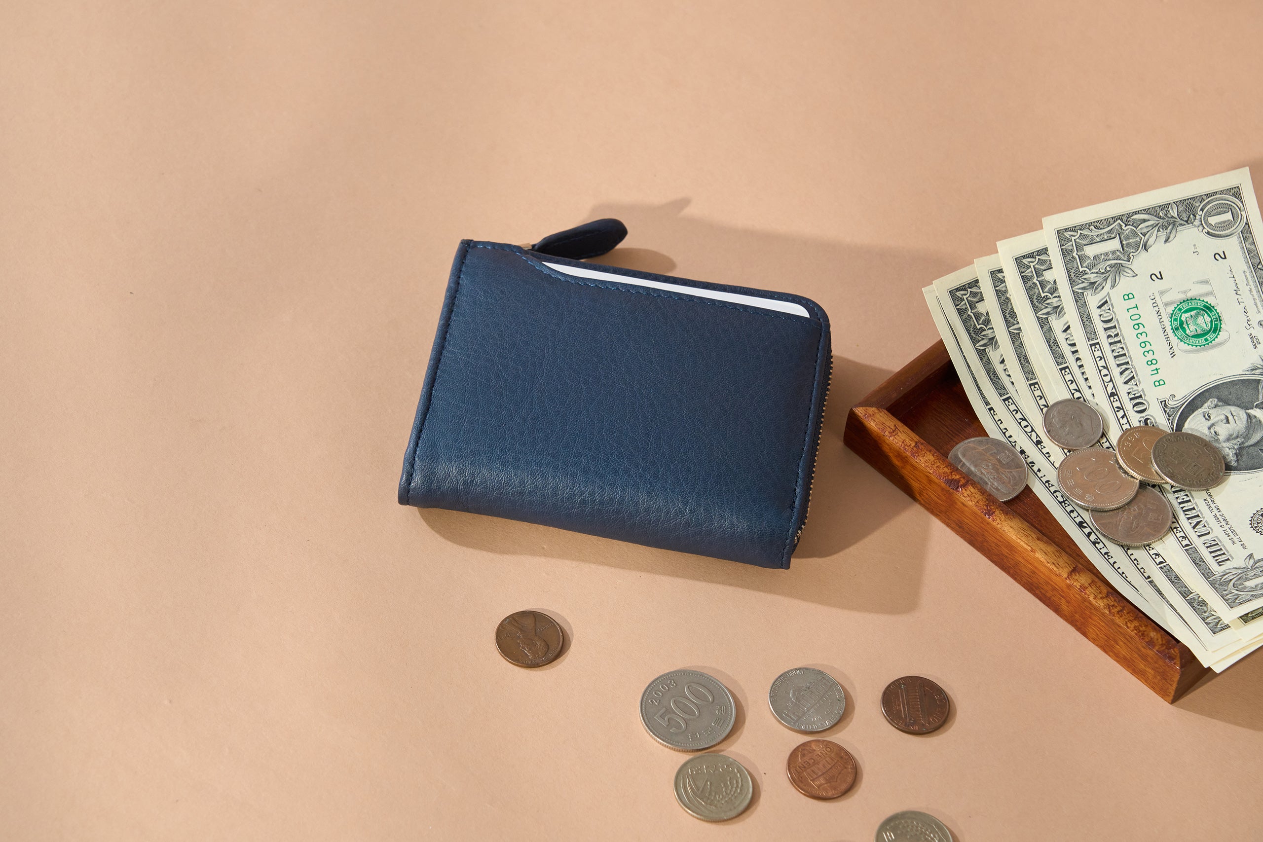 - Slim design with cards, cash, coins all fitting into the size of your palm