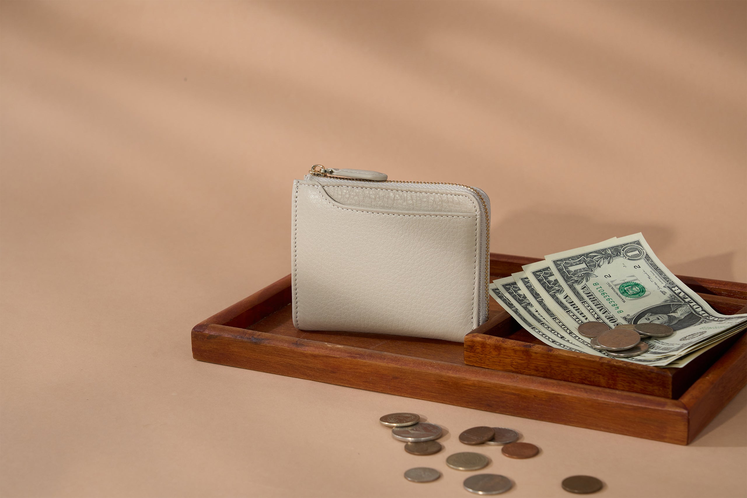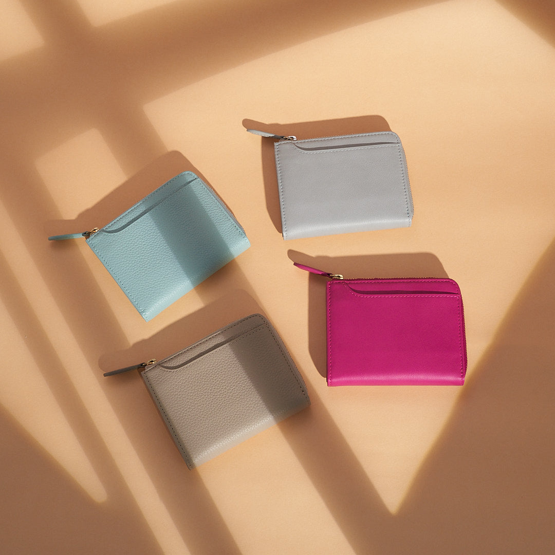 The slim surface is flat with an L-zip curved silhouette, giving the wallet a chic and elegant design.