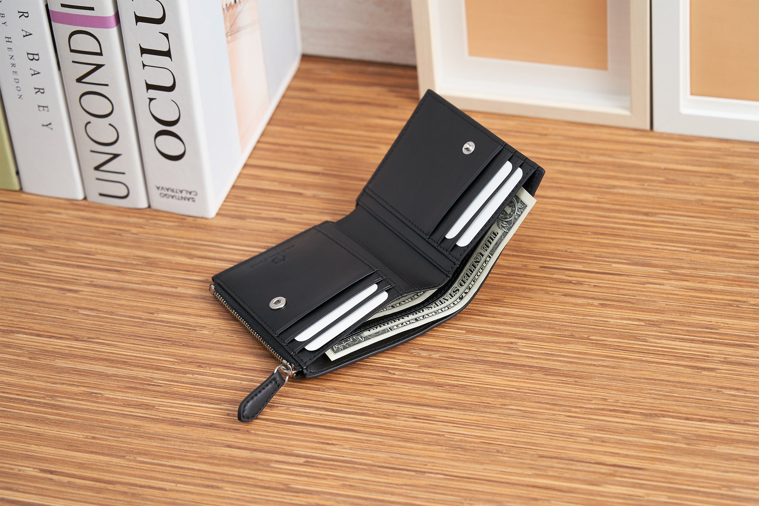 - 2 banknote compartments, 11 card compartments, 1 zipped coin compartment with easy access