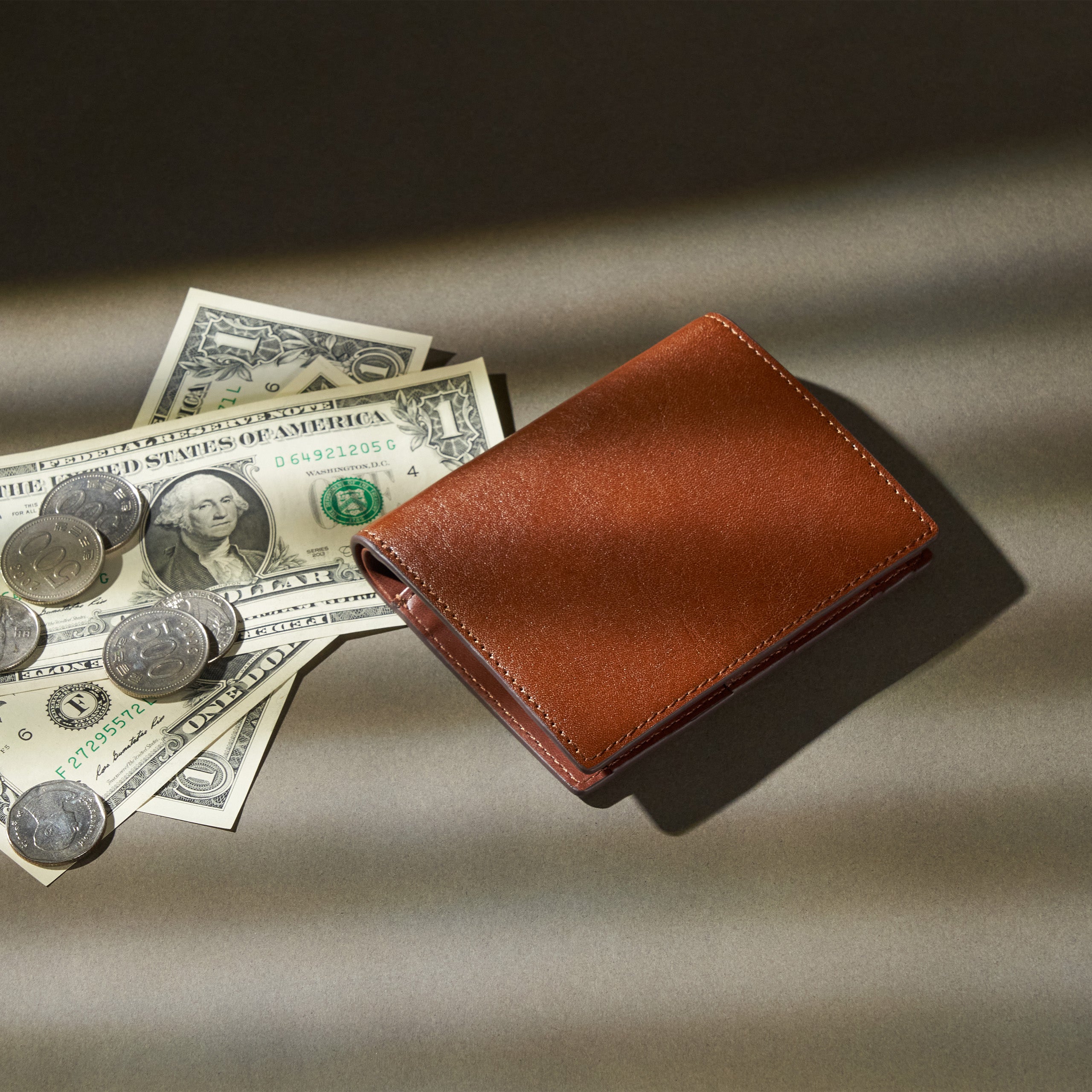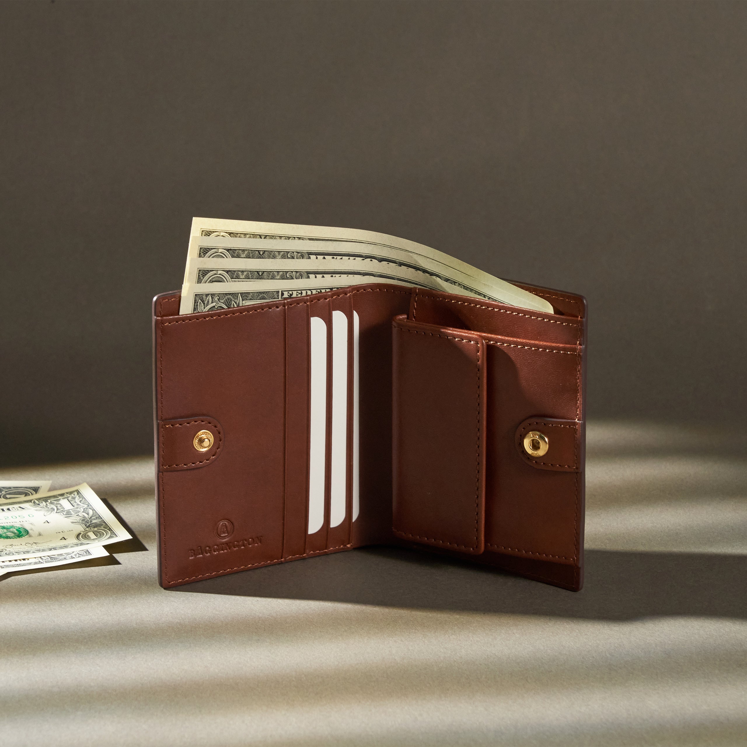 - 1 wide opening coin compartment with expandable gussets flap, and snap fastener for easy viewing and secure access